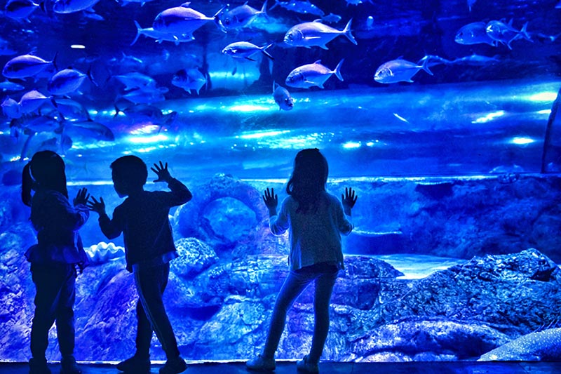 Los ni?os disfrutan de una visión de la vida marina en un acuario durante un viaje familiar personalizado organizado por Nanjing Marine World el 19 de mayo en Nanjing, provincia de Jiangsu. [Foto / Cui Xiao para China Daily]