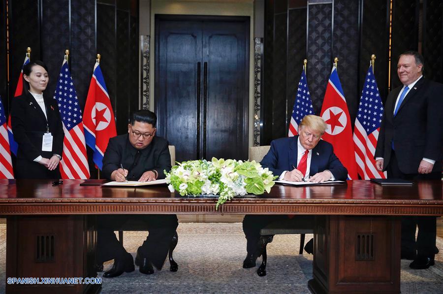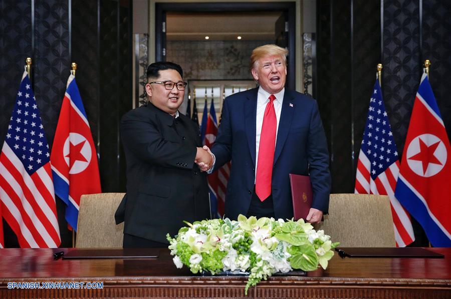SINGAPUR, 12 jun (Xinhua) -- El máximo líder de la República Popular Democrática de Corea (RPDC), Kim Jong Un, y el presidente de Estados Unidos, Donald Trump, firmaron el martes por la tarde en Singapur un acuerdo que el último describió como "bastante amplio".