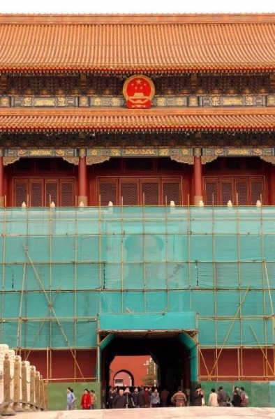 Desde el 8 de febrero al 30 de abril del 2003, la tribuna de la Plaza de Tian'anmen fue renovada para reemplazar las baldosas del piso y aumentar su capacidad impermeable. [Foto: Diario del Pueblo]