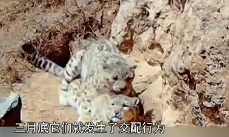 Captura de pantalla de dos leopardos de las nieves apareándose en la provincia de Gansu a finales de marzo de 2018.