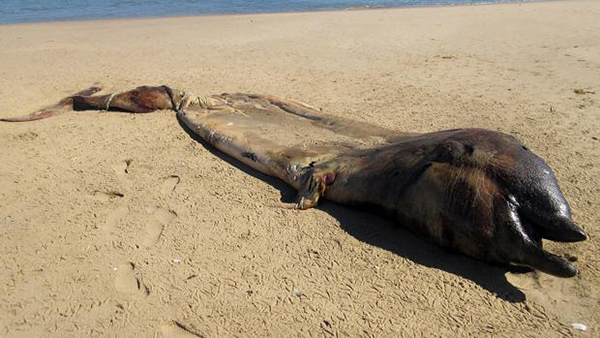 Windhoek, Namibia, 13/06/2018 (El Pueblo en Línea) - Este extra?o animal marino apareció varado la semana pasada en las costas de Africa. En concreto, el cadáver de la criatura fue hallado en una playa del parque Nacional Dorob, en Namibia. Tiene casi seis metros de largo y cuando los científicos lo vieron por primera vez, el cuerpo estaba tan descompuesto que nadie pudo decir si se trataba de un delfín, de una ballena o de una especie aún desconocida, según ABC.