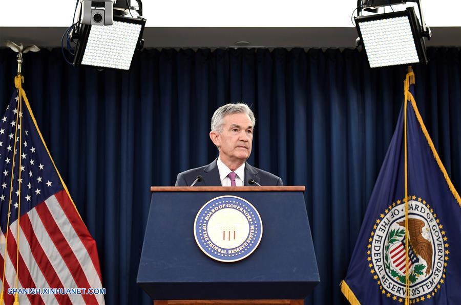El presidente de la Reserva Federal de Estados Unidos, Jerome Powell, participa durante una conferencia de prensa, en Washington D.C., Estados Unidos, el 13 de junio de 2018. (Xinhua/Yang Chenglin)