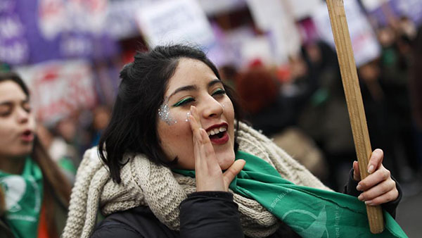 Personas a favor de despenalizar el aborto se manifiestan en el exterior del Congreso, el miércoles 13 de junio (EFE)