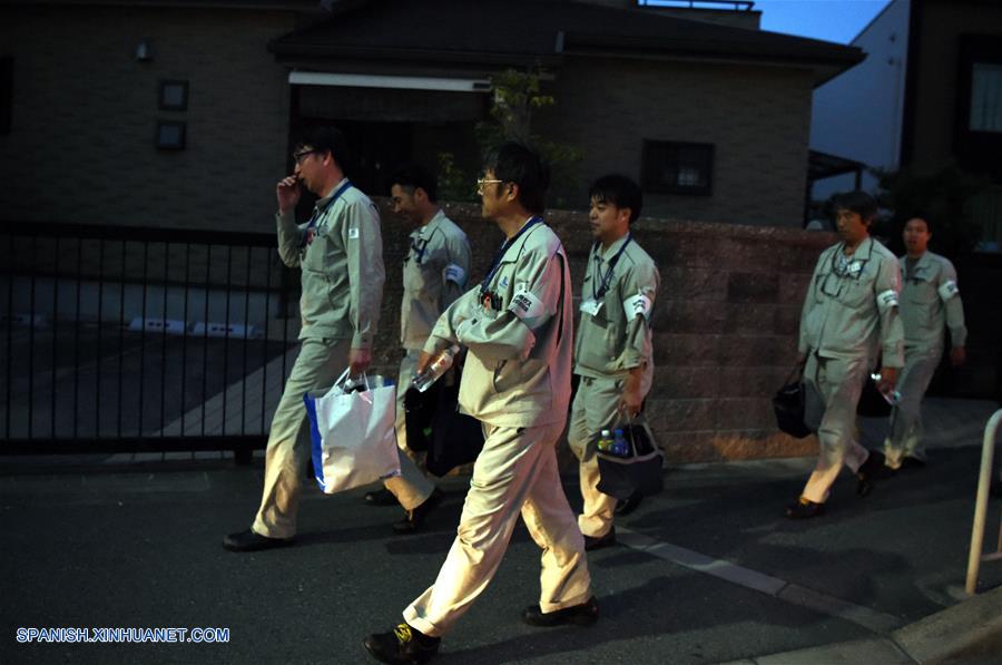 Ingenieros caminan por una calle en Takatsuki, en Osaka, Japón, el 18 de junio de 2018. (Xinhua/Ma Ping)