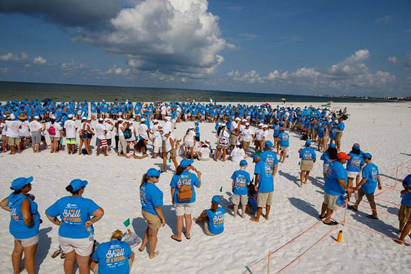 Florida, 25/06/2018 (El Pueblo en Línea) - Más de 1.000 personas vestidas con camisas blancas y azules y gorras de ese color se reunieron en Fort Myers Beach, una de las mejores playas de Estados Unidos, para formar la figura de una concha de mar y obtener así un récord Guinness para Florida, destaca el Nuevo Herald.