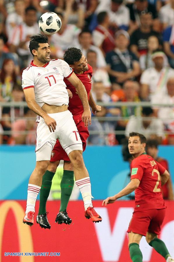 SARANSK, 25 jun (Xinhua) -- Irán peleó hasta el último momento y perdió por muy poco la oportunidad de pasar de la fase de grupos de la Copa Mundial de Fútbol después de empatar 1-1 con Portugal esta noche.