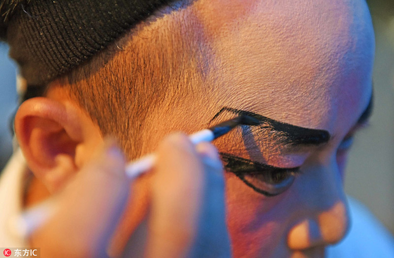 Yang Hanwei, ya rehabilitado del consumo de drogas, se prepara para actuar en un espectáculo de la ópera local de Shanwei, provincia de Guangdong. [Foto: IC]