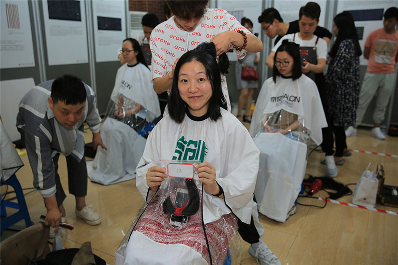 Una voluntaria dona su cabello a los ni?os con leucemia, Shanghai, 27 de junio del 2018. [Foto: proporcionada]