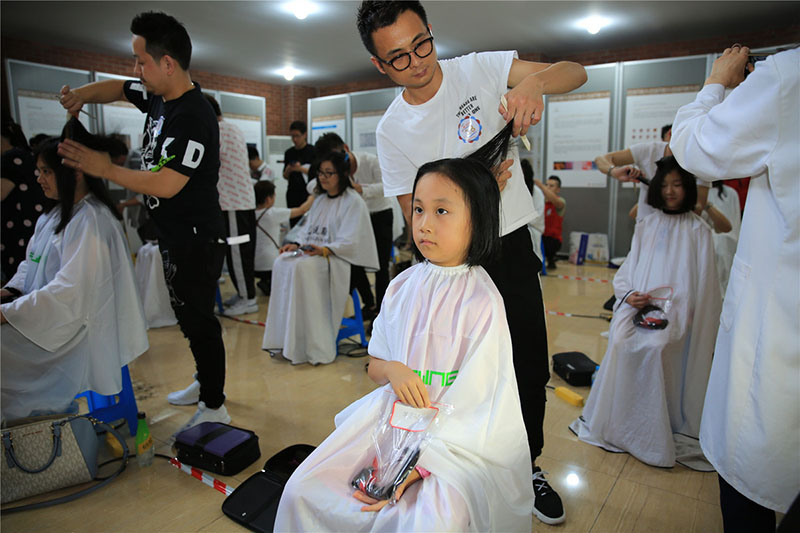 Una ni?a dona su cabello a los ni?os con leucemia, Shanghai, 27 de junio del 2018. [Foto: proporcionada]