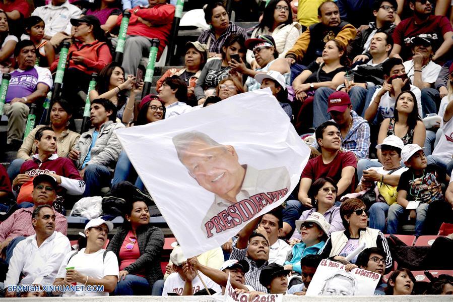 Personas participan durante el cierre de campa?a del candidato presidencial Andrés Manuel López Obrador, de la coalición "Juntos Haremos Historia", en el Estadio Azteca de la Ciudad de México, capital de México, el 27 de junio de 2018. (Xinhua/Alejandro Ayala)