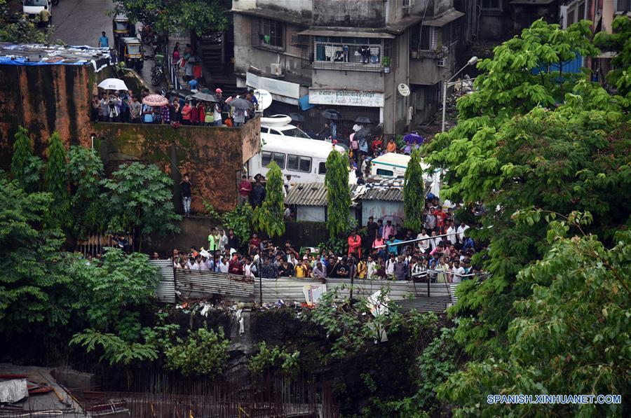 MUMBAI, junio 28, 2018 (Xinhua) -- Personas observan cerca del sitio de construcción donde se estrelló un avión, en Mumbai, India, el 28 de junio de 2018. Al menos cinco personas murieron al estrellarse un avión chárter del gobierno estatal en el que viajaban el jueves en la ciudad india de Mumbai, informó la policía. (Xinhua/Str)