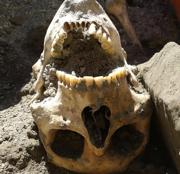 Hace un mes se encontraba en esta área arqueológica en el sur de Italia el esqueleto de un hombre al que había aplastado el tórax un gran bloque de piedra, y cuya imagen dio la vuelta al mundo. En un primer momento se presumió que había muerto decapitado al no encontrarse la cabeza, pero no fue así, explicó la dirección del área arqueológica en un comunicado.