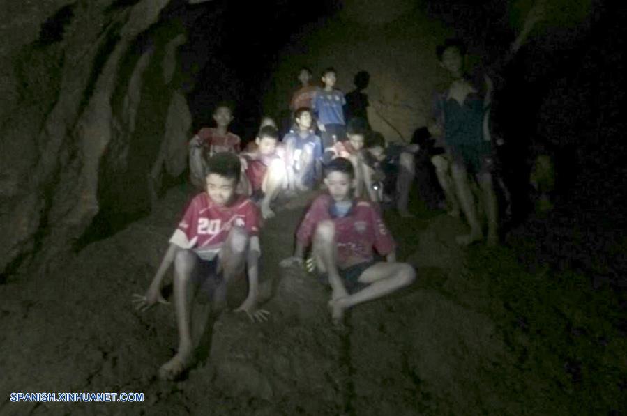 CHIANG RAI, julio 2, 2018 (Xinhua) -- Imagen cedida por la Marina tailandesa, de adolescentes atrapados en una cueva en Mae Sai, provincia de Mae Sai, en el norte de Tailandia, el 2 de julio de 2018. Doce adolescentes y su entrenador de fútbol, atrapados en una cueva en el norte de Tailandia durante nueve días, fueron hallados con vida el lunes, informó el gobernador de la provincia de Chiang Rai, Narongsak Osottanakorn. (Xinhua/Marina tailandesa)