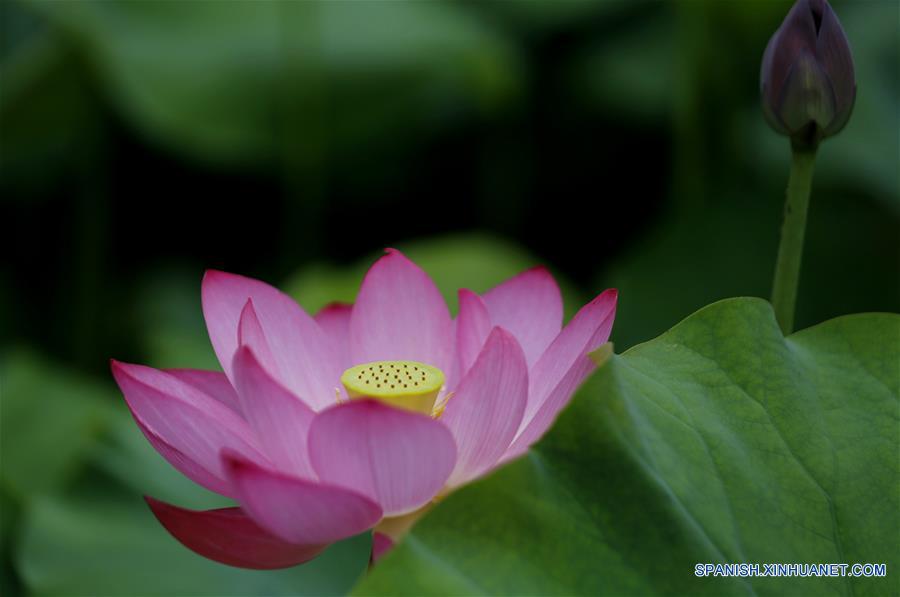 Vista de una flor de loto en el punto escénico de Hongshizhai, en el condado Yinan de Linyi, provincia de Shandong, en el este de China, el 2 de julio de 2018. (Xinhua/Wang Yanbing)