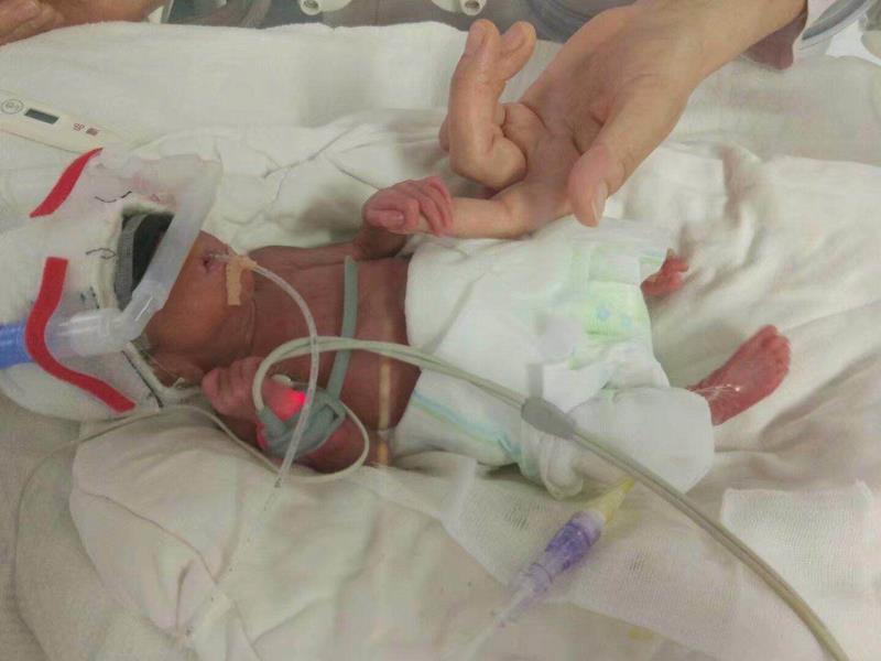 Teniendo en cuenta su peque?o tama?o y su débil respiración, los pediatras consideraban que sería díficil que la recién nacida pudiera sobrevivir. Afortunadamente, la ni?a pudo comenzar a respirar por sí misma y se fue recuperando bajo el cuidado de pediatras y enfermeros chinos.