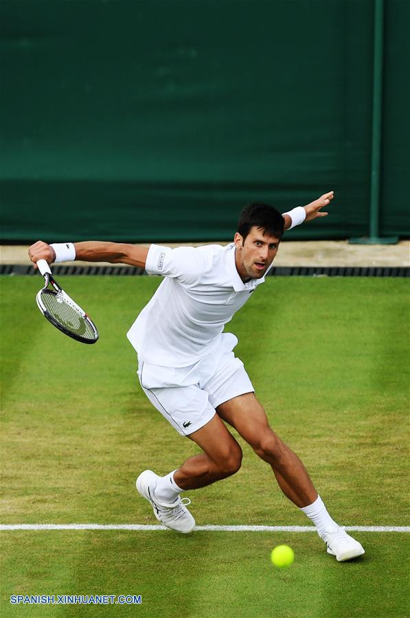 LONDRES, julio 5, 2018 (Xinhua) -- Novak Dokovic, de Serbia, devuelve la pelota a Horacio Zeballos, de Argentina, durante el partido individual varonil de segunda ronda del Campeonato de Wimbledon 2018, en Londres, Reino Unido, el 5 de julio de 2018. Novak Dokovic ganó el encuentro. (Xinhua/Guo Qiuda)