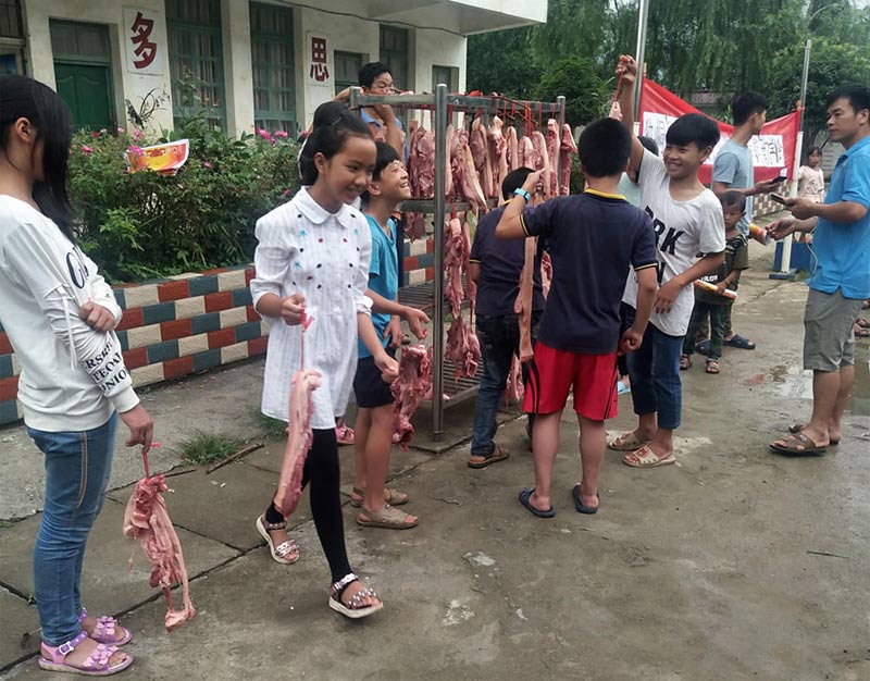 Nanning, Guangxi, 12/07/2018 (El Pueblo en Línea) - Una práctica innovadora de recompensar a los estudiantes en una escuela primaria china con bolsas de carne de cerdo ha recibido elogios de los internautas.