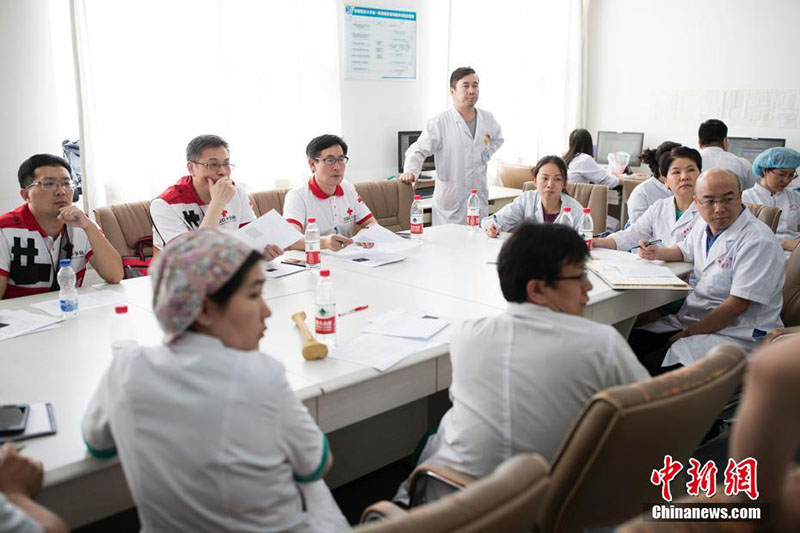 Los médicos chinos hacen planes para garantizar que las cirugías se realicen sin problemas, el 5 de julio de 2018.