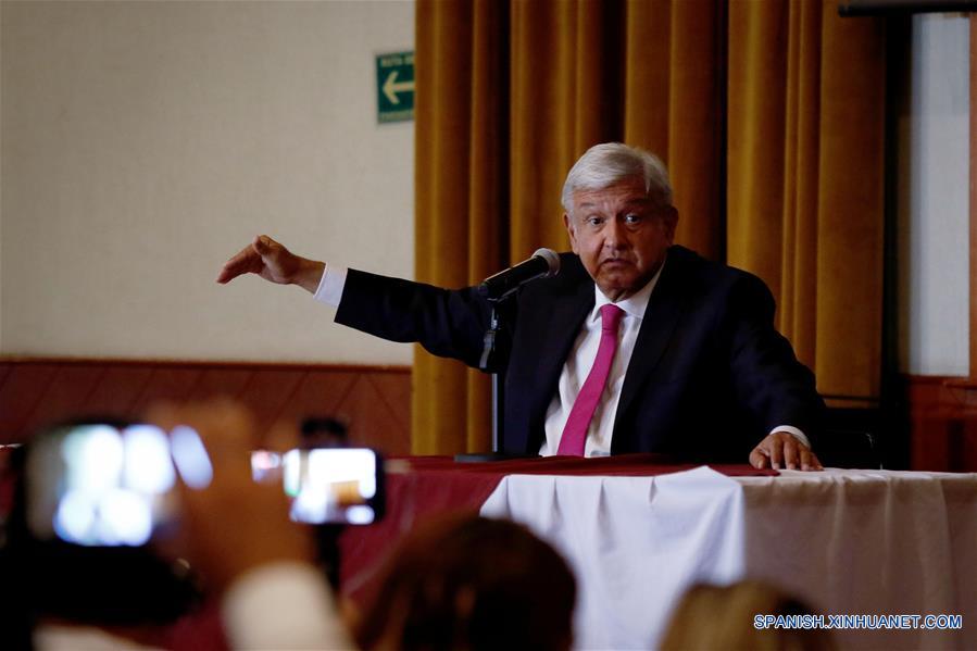 El virtual ganador de la elección presidencial en México, Andrés Manuel López Obrador, participa en una conferencia de prensa después de reunirse con los próximos diputados federales y senadores de la Coalición Juntos Haremos Historia, en la Ciudad de México, capital de México, el 11 de julio de 2018. De acuerdo con información de la prensa local, Andrés Manuel López Obrador anunció en una conferencia de prensa, las primeras iniciativas que mandará al Congreso, incluyendo la eliminación de la inmunidad presidencial y la revocación de las leyes de la reforma educativa. (Xinhua/Francisco Ca?edo)