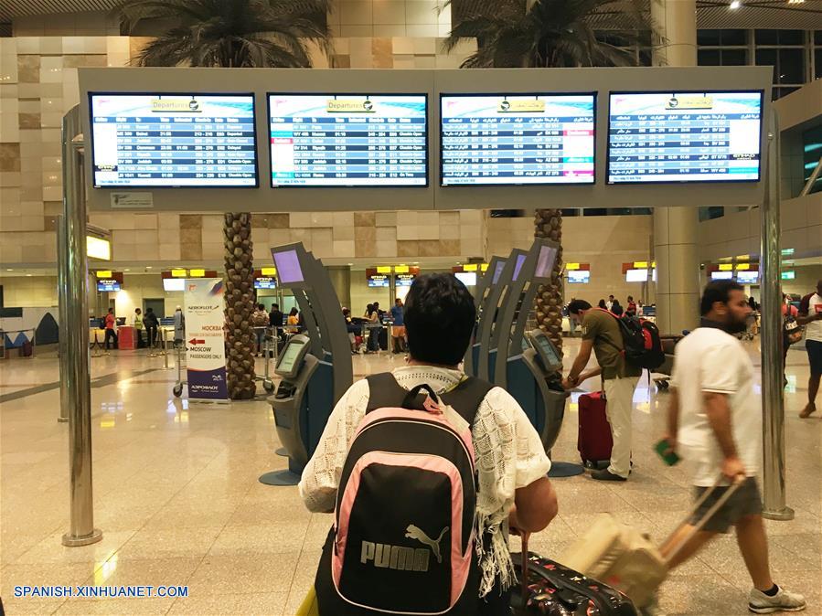 Una persona observa pantallas dentro del Aeropuerto Internacional de El Cairo, en El Cairo, Egipto, el 12 de julio de 2018. Doce personas resultaron heridas la noche del jueves por la explosión de unos depósitos de combustible cerca del Aeropuerto Internacional de El Cairo, Egipto, pero el tráfico aéreo no fue interrumpido. (Xinhua/Wu Huiwo)