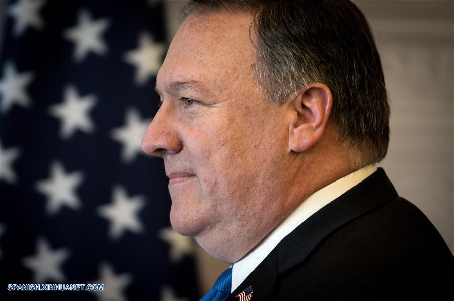 CIUDAD DE MEXICO, julio 13, 2018 (Xinhua) -- El secretario de Estado de Estados Unidos, Mike Pompeo, participa en una conferencia de prensa al término de una reunión con el secretario de Relaciones Exteriores mexicano, Luis Videgaray, en la Ciudad de México, capital de México, el 13 de julio de 2018. De acuerdo con información de la prensa local, durante la reunión entre Pompeo y Videgaray, llevada a cabo en la sede de la Secretaría de Relaciones Exteriores, los funcionarios abordaron temas de migración, seguridad y comercio. (Xinhua/Francisco Ca?edo)
