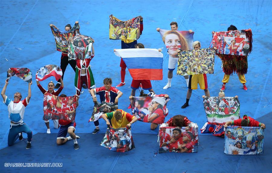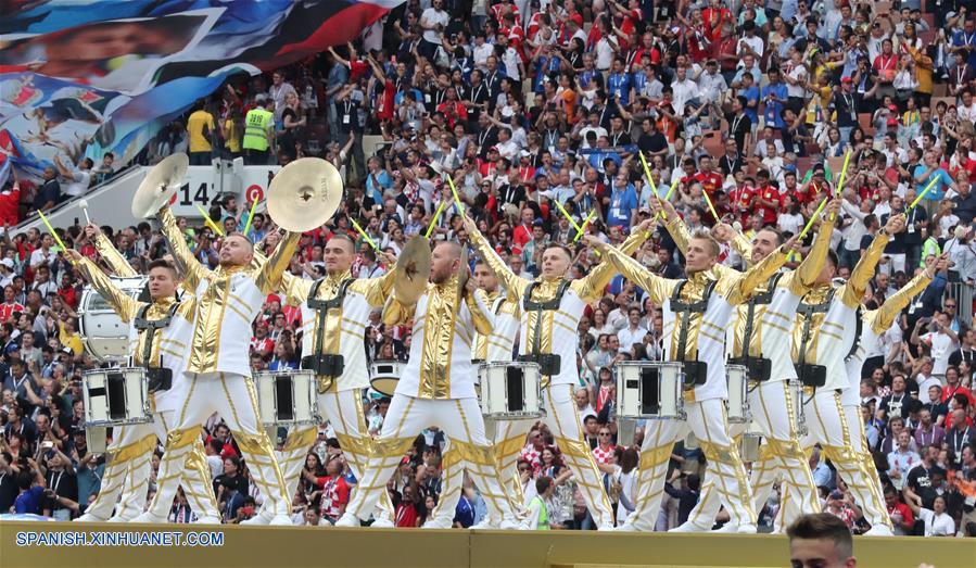MOSCU, julio 15, 2018 (Xinhua) -- Artistas realizan un espectáculo durante la ceremonia de clausura de la Copa Mundial de la FIFA Rusia 2018, en Moscú, Rusia, el 15 de julio de 2018. (Xinhua/Li Ming)