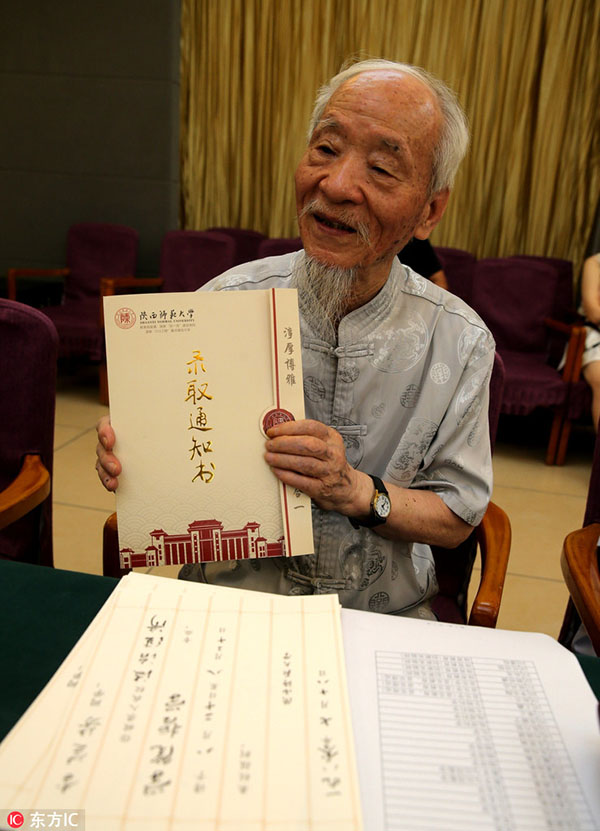 Un profesor muestra una carta de admisión escrita por él a mano en la Universidad Normal de Shaanxi en Xi'an, provincia de Shaanxi, el 16 de julio de 2018. [Foto / IC]