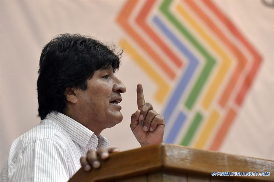 El presidente de Bolivia, Evo Morales, pronuncia un discurso durante la última jornada del XXIV Encuentro del Foro de Sao Paulo, llevado a cabo en el Palacio de Convenciones de La Habana, en La Habana, Cuba, el 17 de julio de 2018. (Xinhua/Freddy Zarco/ABI)