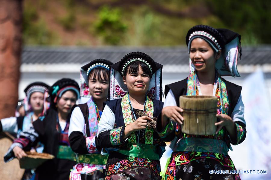 GUIZHOU, julio 18, 2018 (Xinhua) -- Personas del grupo étnico Bouyei interpretan un baile durante el Festival Doble Sexto, en Liuzhi, provincia de Guizhou, en el suroeste de China, el 18 de julio de 2018. El Festival Doble Sexto, un importante festival tradicional para el pueblo Bouyei, se celebra el sexto día del sexto mes de acuerdo con el calendario lunar, cuando las personas hacen ofrendas a los dioses, cantan y danzan portando vestidos tradicionales. (Xinhua/Tao Liang)