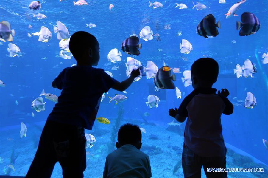 Ni?os juegan en el Parque Oceánico de Rizhao, en Rizhao, provincia de Shandong, en el este de China, el 21 de julio de 2018. Un carnaval oceánico de dos meses de duración comenzó el sábado en el Parque Oceánico de Rizhao. (Xinhua/Zhang Jingang)