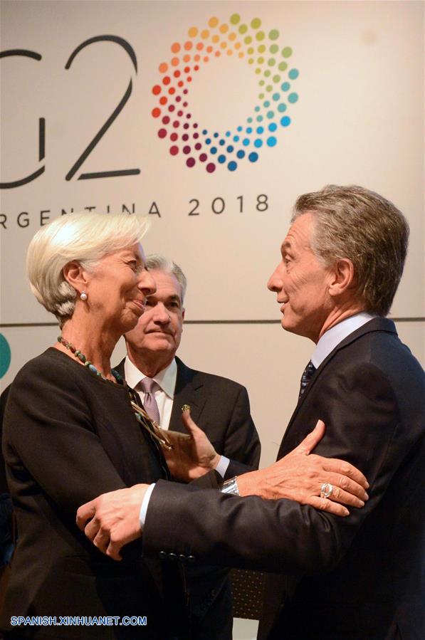 La directora gerente del Fondo Monetario Internacional (FMI), Christine Lagarde (i), y el presidente de Argentina, Mauricio Macri (d), conversan durante la 3 Reunión de ministros de Finanzas y presidentes de Bancos Centrales del G20, en el Centro de Exposiciones y Convenciones (CEC) de la ciudad de Buenos Aires, capital de Argentina, el 22 de julio de 2018. El presidente de Argentina, Mauricio Macri, dijo el domingo estar "muy satisfecho" por el progreso de los distintos grupos de trabajo del Grupo de los Veinte (G20) en el contexto de la presidencia argentina del foro multilateral. Macri expresó lo anterior en el Centro de Exposiciones y Convenciones (CEC) de Buenos Aires, donde se lleva a cabo la tercera reunión anual de ministros de Finanzas del G20. (Xinhua/Str)
