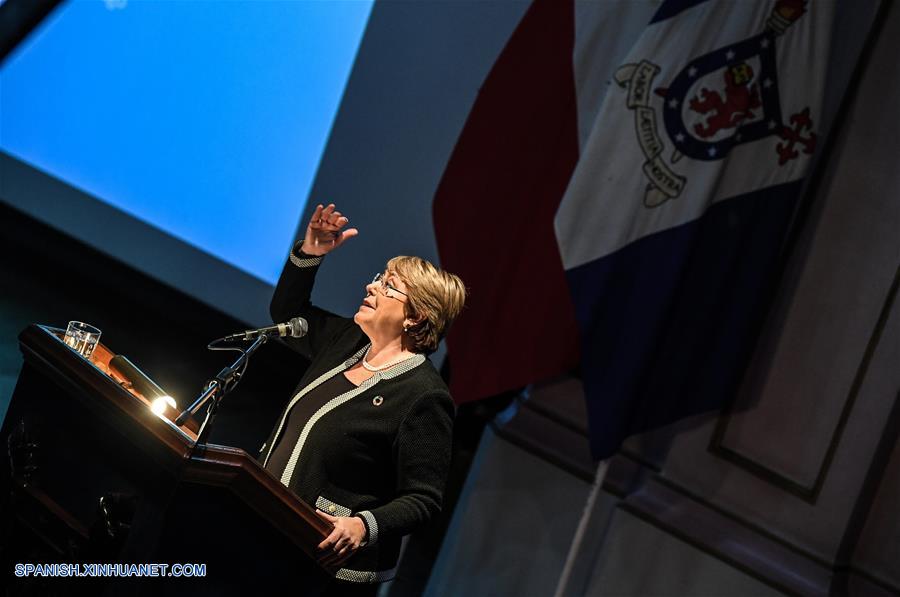 SANTIAGO, julio 23, 2018 (Xinhua) -- La ex presidenta de Chile, Michelle Bachelet, participa durante la inauguración del 2 Modelo de Naciones Unidas para América Latina y el Caribe (MONULAC), en la Universidad de Santiago, en Santiago, capital de Chile, el 23 de julio de 2018. De acuerdo con información de la prensa local, la ex presidenta chilena inauguró el 2 MONULAC con la conferencia magistral "Avances y desafíos en materia de igualdad y equidad de género en Latinoamérica y el Caribe", donde habló de su experiencia como Directora Ejecutiva de la Organización de las Naciones Unidas (ONU) Mujeres entre 2010 y 2013. El MONULAC es un ejercicio donde estudiantes universitarios provenientes de diversos países de Latinoamérica simulan el trabajo que realizan los delegados de la ONU. (Xinhua/Jorge Villegas)