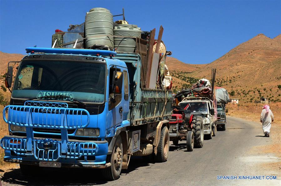 BEIRUT, 23 jul (Xinhua) -- Cerca de 850 refugiados sirios de Arsal en Líbano regresaron hoy a su país a través del cruce fronterizo de Zemrani.
