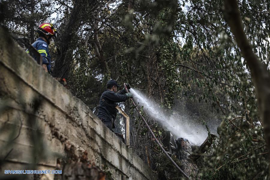 MATI, julio 24, 2018 (Xinhua) -- Bomberos extinguen un incendio en Mati, un pueblo costero en el este de Atenas, Grecia, el 24 de julio de 2018. De acuerdo con información de la prensa local, el número de muertos por los incendios ocurridos cerca de Atenas se ha actualizado a 74 el martes por la tarde, mientras continúa la búsqueda por más víctimas en la costa este de Attica, informó la agencia nacional griega de noticias AMNA. (Xinhua/Lefteris Partsalis)