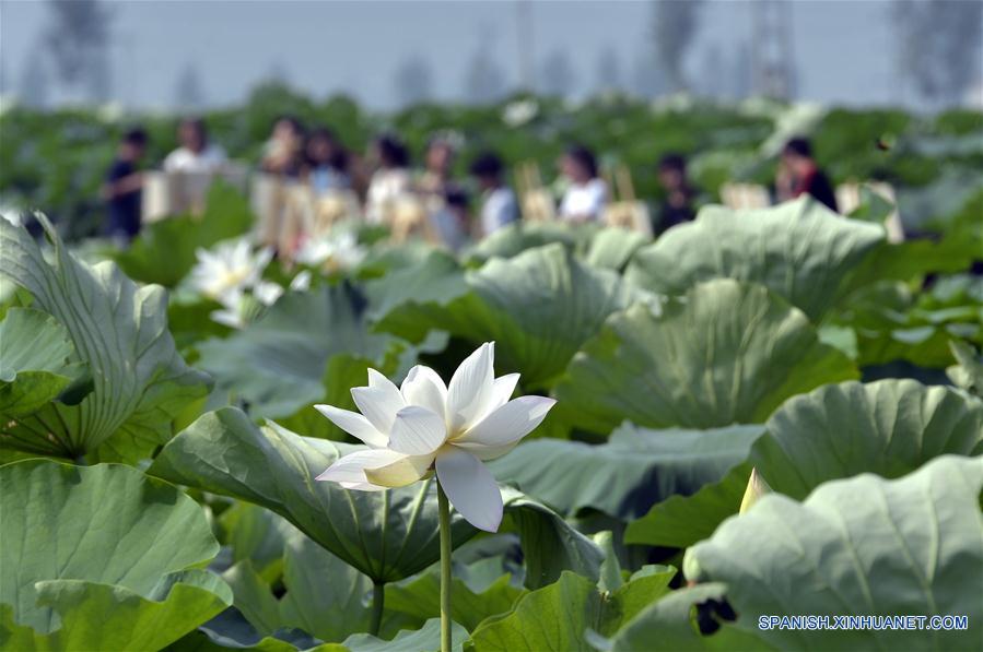 HEBEI, julio 24, 2018 (Xinhua) -- Un grupo de estudiantes elabora pinturas de flores de loto, en el condado de Longyao, provincia de Hebei, en el norte de China, el 24 de julio de 2018. (Xinhua/Mu Yu)