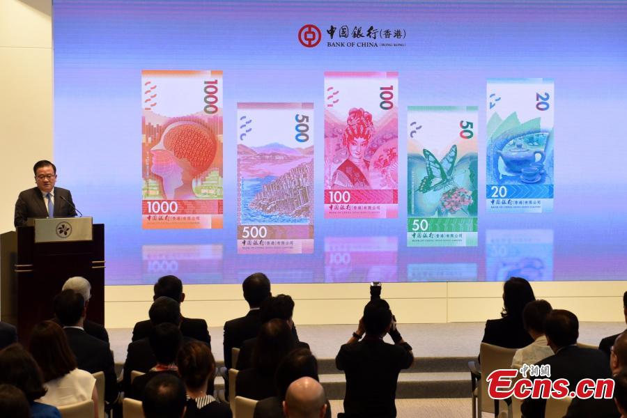 Gao Yingxin, vicepresidente y director ejecutivo de la filial del Banco de China en Hong Kong, explica durante una conferencia de prensa acerca de las características de la nueva serie de billetes, 24 de julio del 2018. Los nuevos billetes contarán con seis características avanzadas de seguridad para evitar la falsificación y mostrarán el rico patrimonio natural y cultural de la ciudad. (Foto: servicio de noticias de China/ Zhang Wei)