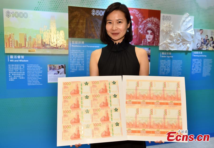 La Autoridad Monetaria de Hong Kong y las sucursales bancarias locales del Banco Standard Chartered, el Banco de China y la Corporación de la Banca de Shanghai presentaron los dise?os de la nueva serie 2018 de billetes de Hong Kong durante una conferencia de prensa celebrada en Hong Kong, el 24 de julio del 2018. Los nuevos billetes contarán con seis características avanzadas de seguridad para evitar la falsificación y mostrarán el rico patrimonio natural y cultural de la ciudad. (Foto: servicio de noticias de China/ Zhang Wei)