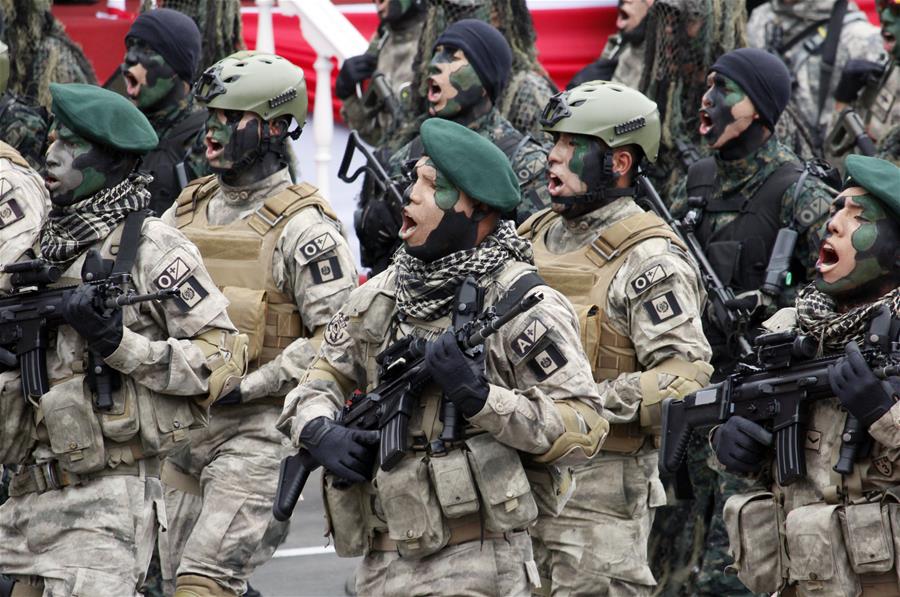LIMA, julio 29, 2018 (Xinhua) -- Miembros de las Fuerzas Armadas peruanas participan durante la Gran Parada y Desfile Cívico-Militar, en el marco de las celebraciones del 197 Aniversario de la Independencia de Perú, en la ciudad de Lima, Perú, el 29 de julio de 2018. De acuerdo con información de la prensa local, residentes de Lima y del interior del país asistieron el domingo a la avenida Brasil para presenciar la Gran Parada y Desfile Cívico-Militar y celebrar el 197 Aniversario de la Independencia de Perú. (Xinhua/Luis Camacho)