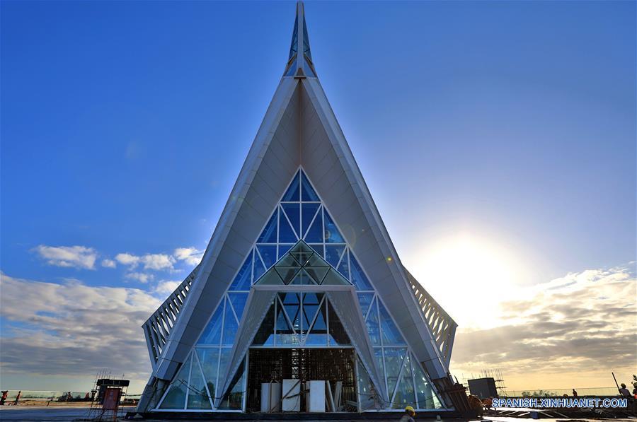 Imagen del 26 de julio de 2018 de una vista de la Plaza de la Cultura y el Entretenimianto Jardín del Edén, localizada en la Zona de Cooperación Económica y Comercial Jinfei (Zona Jinfei), a 3.5 kilómetros al oeste de Port Louis, capital de Mauricio. La Zona Jinfei contruida por China, que ocupa 211 hectáreas de tierra, se localiza a 3.5 kilómetros al oeste de Port Louis, capital de Mauricio, cerca de algunos del los paisajes más icónicos del país. Las firmas chinas ayudan a establecer una ciudad inteligente en Mauricio a medida que los lazos económicos florecen. (Xinhua/Wang Teng)