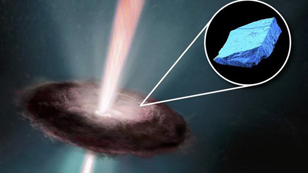 Pero los cristales de hibonita han revelado que en los albores del Sistema Solar el Sol era mucho más violento. Antes de que se formasen los planetesimales, y de que se despejara el entorno de la protoestrella, el disco de gas que rodeaba el centro del Sistema Solar alcanzaba una temperatura de 1.500 oC. Según los investigadores fue cuando esta parte del disco comenzó a enfriarse cuando se formaron los minerales azules hallados en los meteoritos. Después, el joven Sol disparó protones y partículas subatómicas al espacio.