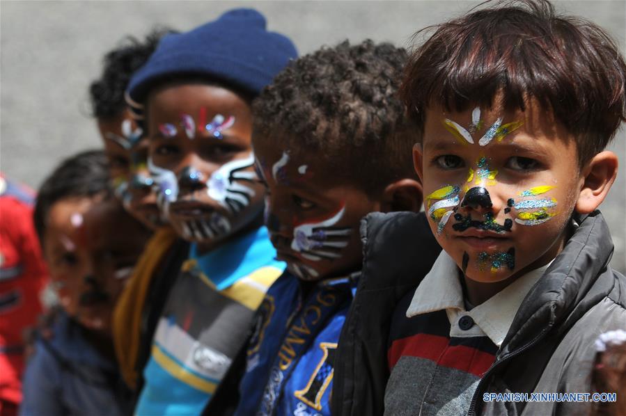 SANA, agosto 1, 2018 (Xinhua) -- Ni?os que huyeron de sus casas en Hodeidah asisten a actividades llevadas a cabo para personas desplazadas en Saná, Yemen, el 1 de agosto de 2018. Más de 35,000 familias han sido desplazadas recientemente de la ciudad portuaria del Mar Rojo de Hodeidah, en Yemen debido a los intensos combates entre las fuerzas gubernamentales y los rebeldes Houthi, informó la Oficina de la Organización de las Naciones Unidas de Asuntos Humanitarios (OCHA, por sus siglas en inglés) el 16 de julio. (Xinhua/Mohammed Mohammed)