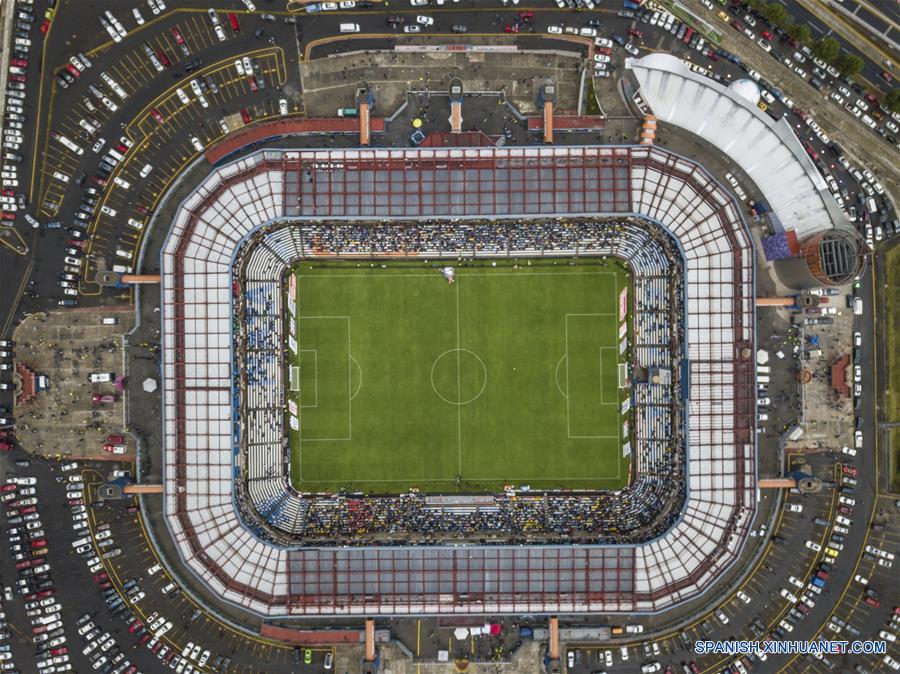 Vista aérea tomada con un dron del Estadio Hidalgo previo al partido correspondiente a la Jornada 3 del Torneo Apertura 2018 de la Liga MX, entre Pachuca y América, celebrado en el Estadio Hidalgo, en la ciudad de Pachuca, estado de Hidalgo, México, el 4 de agosto de 2018. (Xinhua/César Vicu?a)