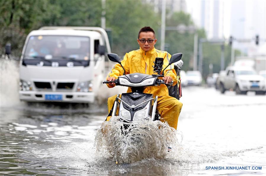 LIAONING, agosto 7, 2018 (Xinhua) -- Vehículos vadean a través de una calle inundada, en Shenyang, capital de la provincia de Liaoning, en el noreste de China, el 7 de agosto de 2018. Una lluvia torrencial causó el martes la inundación en Shenyang. (Xinhua/Yang Qing)