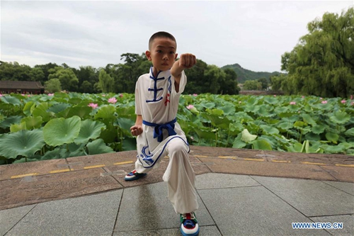 Un ni?o chino practica Taichi en el Chengde Mountain Resort de Chengde, provincia de Hebei, 8 de agosto del 2018, Día Nacional de la Actividad Física. (Foto: Xinhua/ Liu Huanyu)