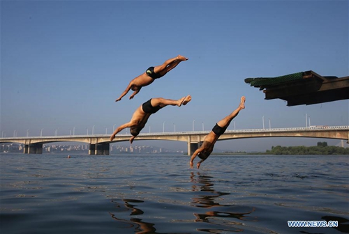 Ciudadanos chinos bucean en el río Hanjiang de Xiangyang, provincia de Hubei, 8 de agosto del 2018, Día Nacional de la Actividad Física. (Foto: Xinhua/ Wang Hu)