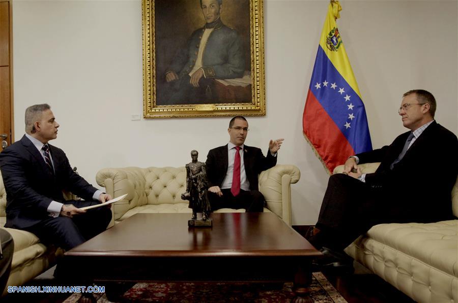 CARACAS, 8 ago (Xinhua) -- El canciller venezolano, Jorge Arreaza, entregó hoy un informe preliminar al encargado de Negocios de Estados Unidos acreditado en el país, James Story, sobre el "magnicidio en grado de frustración" contra el presidente Nicolás Maduro.