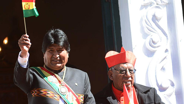 El presidente de Bolivia, Evo Morales, usa la medalla y la banda presidencial (Str / EFE)