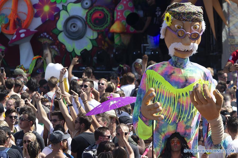Personas participan en el 27 Desfile Callejero de Zurich, en el centro de Zurich, Suiza, el 11 de agosto de 2018. De acuerdo con información de la prensa local, con el lema "Cultura de Tolerancia", el evento anual de danza y música Desfile Callejero se llevó a cabo en Zurich el sábado, atrayendo a alrededor de un millón de participantes. (Xinhua/Michele Limina)