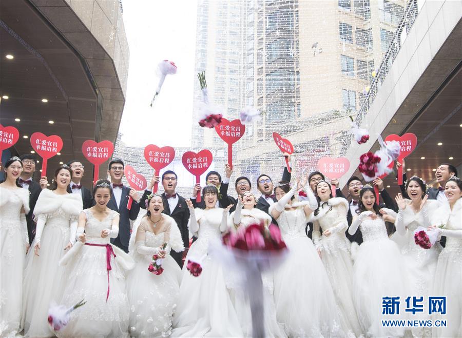 Varias novias chinas posan durante la ceremonia de la boda en grupo.(Foto:Xinhua)