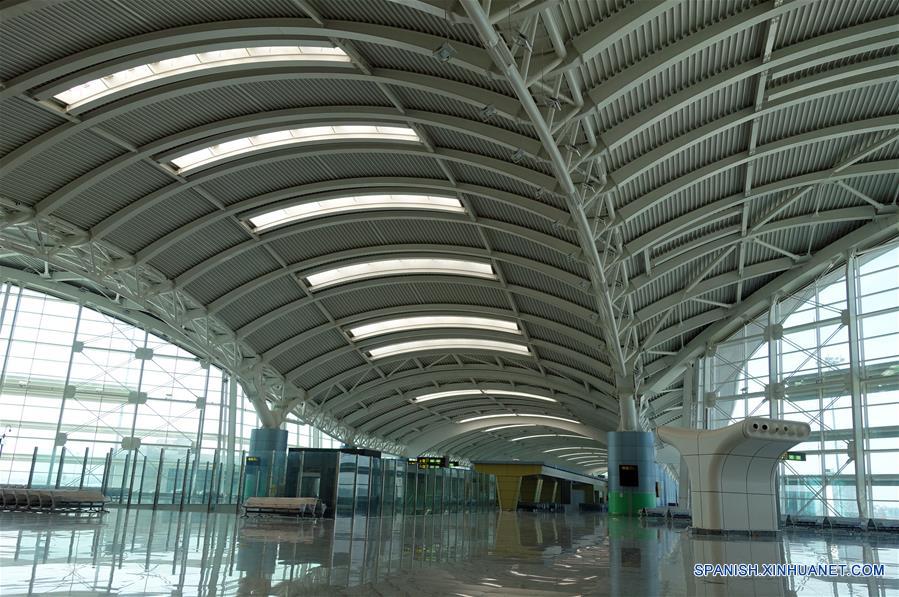 Imagen del 10 de agosto de 2018 de una vista de la sala de espera de embarque del nuevo Aeropuerto de Argel, en Argel, Argelia. La construcción del nuevo Aeropuerto de Argel por la Corporación Estatal de Construcción e Ingeniería de China (CSCEC, por sus siglas en inglés) será completada pronto. (Xinhua/Str)